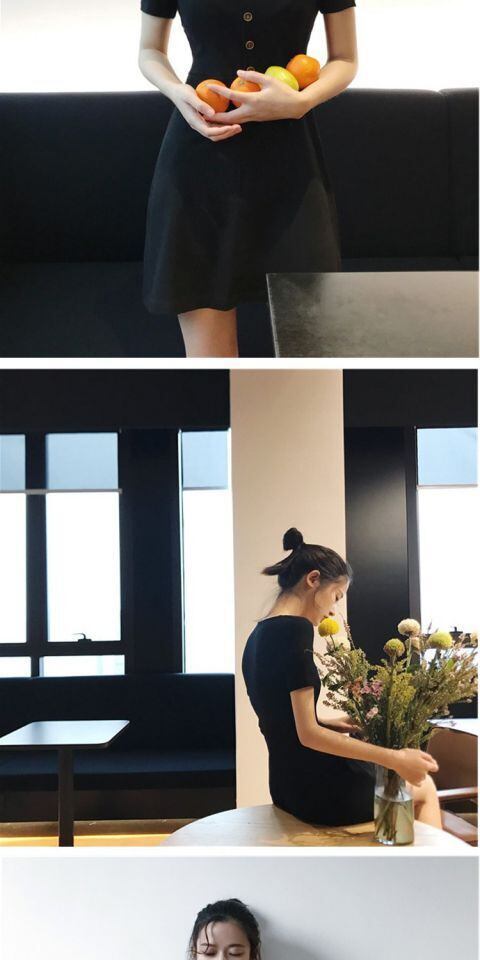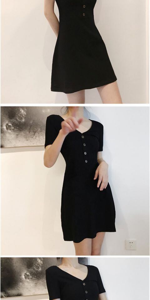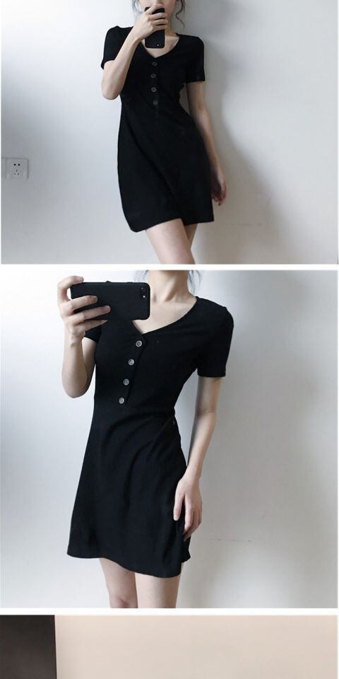 【送料無料】Vネックスリムブラックチュニックワンピースドレス スカート 韓国 オルチャン K-POP アイドル ワンピース ジャケット コート ブルゾン ブラウス スーツ カーディガン ニット フーディー トレーナー キャミソール スカート シャツ 10A40341524820