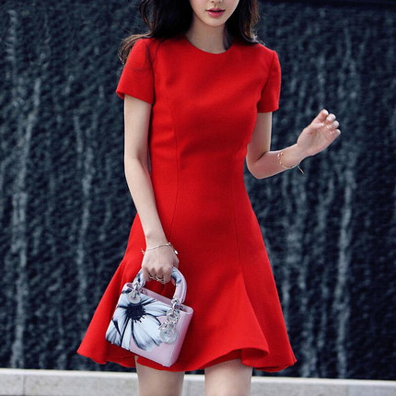 【送料無料】AラインテールフィッシュワンピースドレスOP♥カワイイ♥レッド 韓国 オルチャン K-POP アイドル ワンピース ジャケット コート ブルゾン ブラウス スーツ カーディガン ニット フーディー トレーナー キャミソール スカート シャツ 10A39679259186