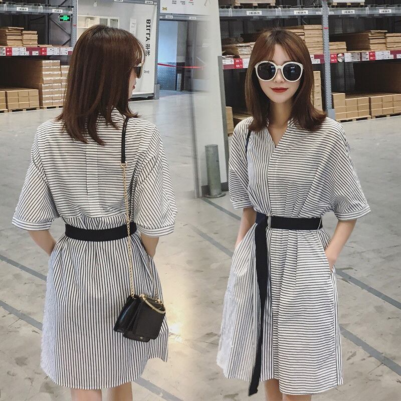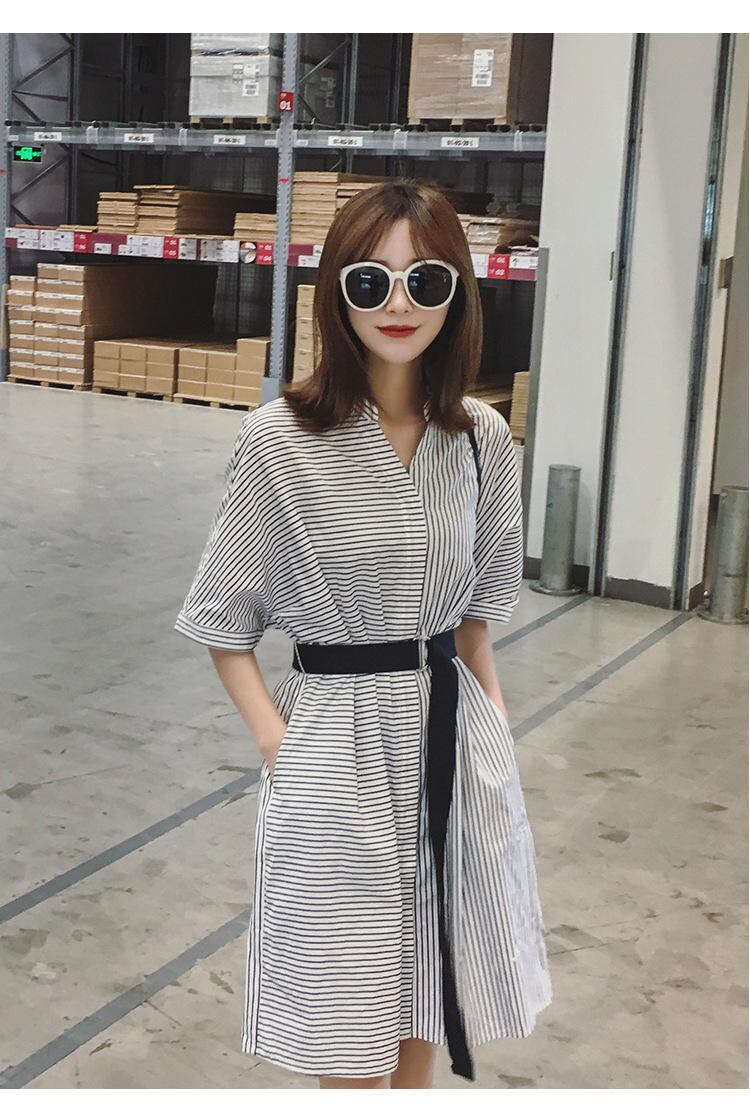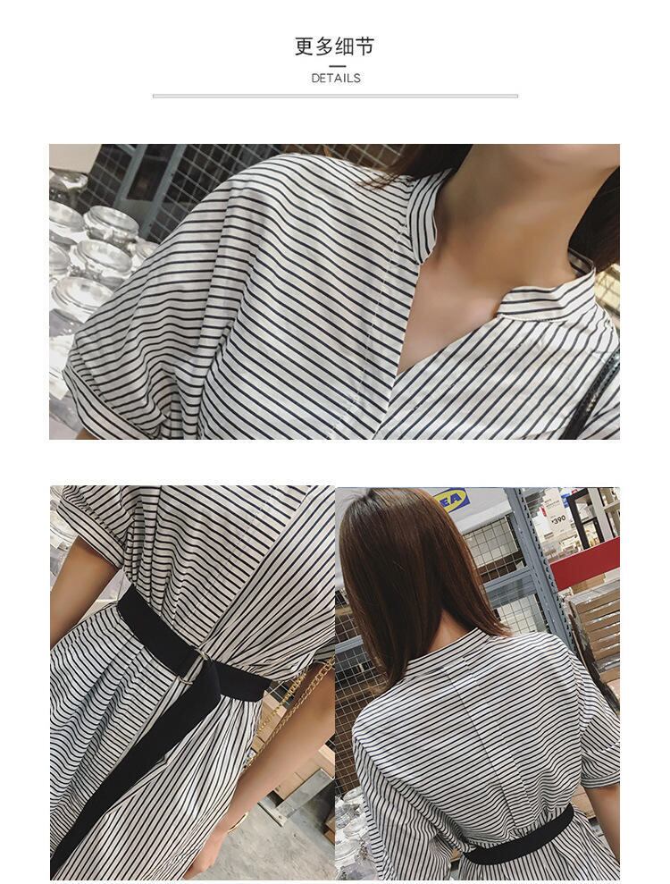 新品 ストライプVネック★シャツブラウススカート ハーネス ベルト 韓国 オルチャン K-POP アイドル ワンピース ジャケット コート ブルゾン ブラウス スーツ カーディガン ニット フーディー トレーナー キャミソール スカート シャツ 10A68916626186