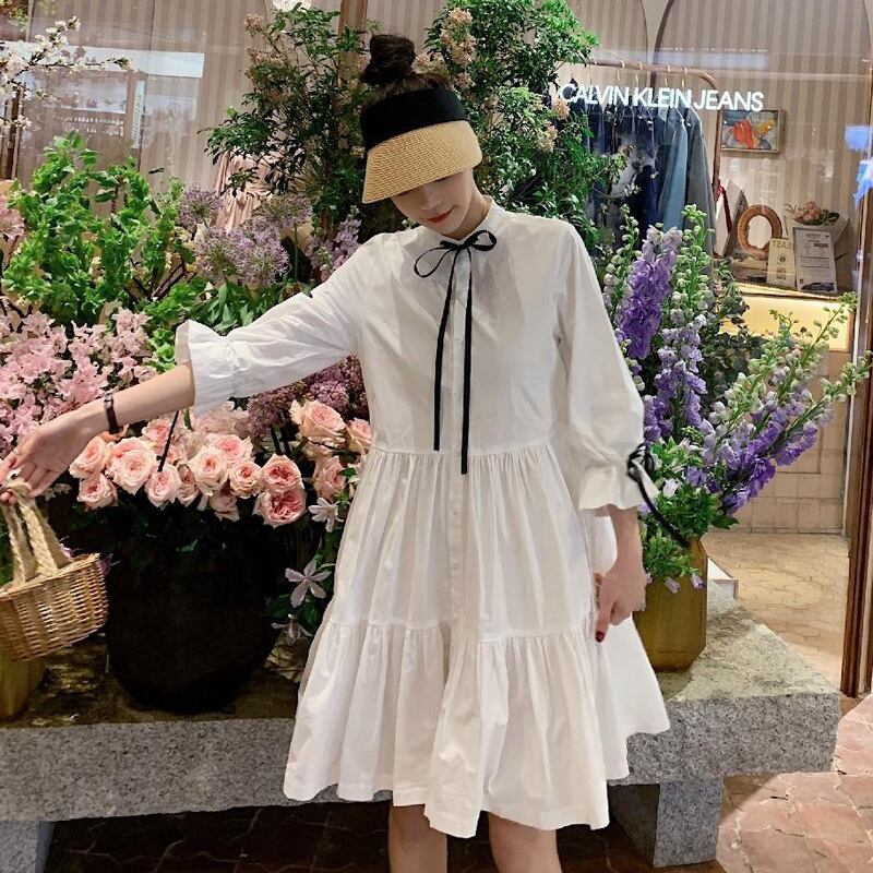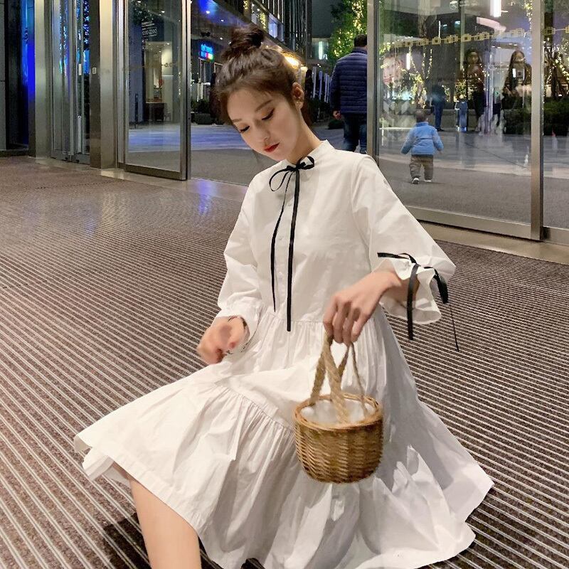 新品 リボン白Aラインシャツブラウス ホワイト 韓国 オルチャン K-POP アイドル ワンピース ジャケット コート ブルゾン ブラウス スーツ カーディガン ニット フーディー トレーナー キャミソール スカート シャツ 10A5551335108