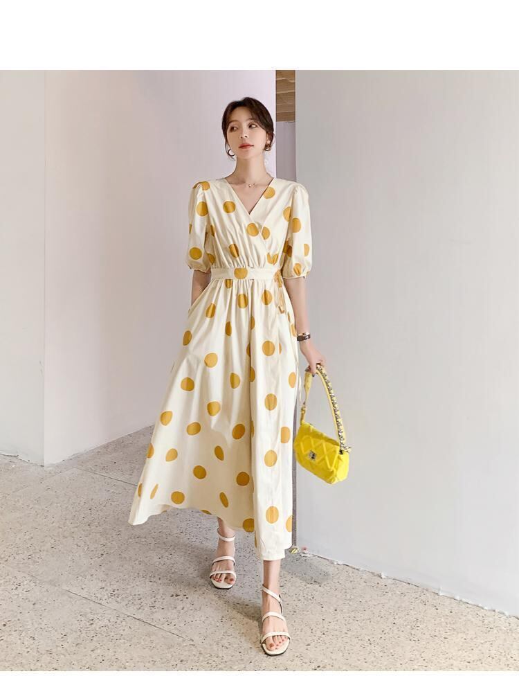 新品 Vネック水玉♡★スリムロングスカート 韓国 オルチャン K-POP アイドル ワンピース ジャケット コート ブルゾン ブラウス スーツ カーディガン ニット フーディー トレーナー キャミソール スカート シャツ 10A87370877268