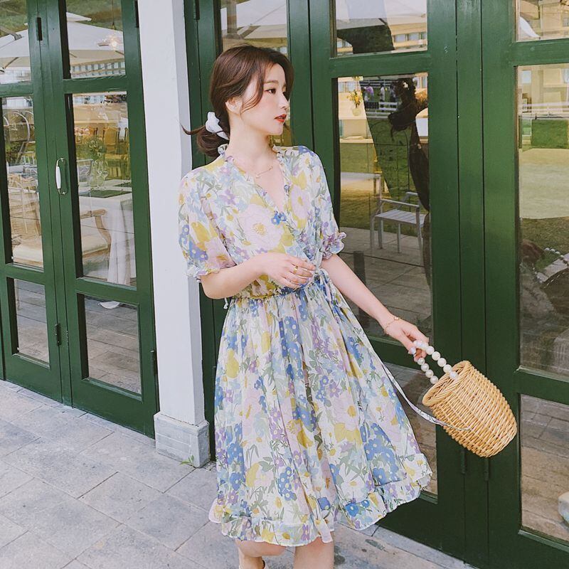 新品 Vネック花柄シフォンスカート 韓国 オルチャン K-POP アイドル ワンピース ジャケット コート ブルゾン ブラウス スーツ カーディガン ニット フーディー トレーナー キャミソール スカート シャツ 10A20051368589