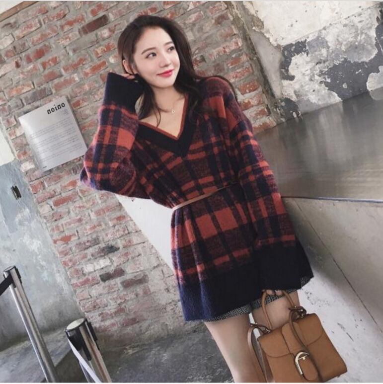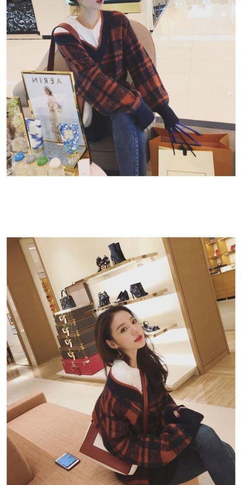 【送料無料】新品 チェック柄セーター 韓国 オルチャン K-POP アイドル ワンピース ジャケット コート ブルゾン ブラウス スーツ カーディガン ニット フーディー トレーナー キャミソール スカート シャツ 10A8683197804