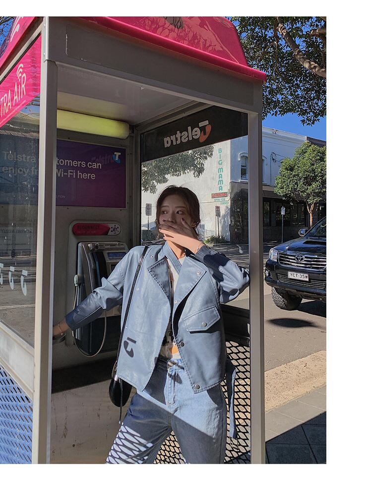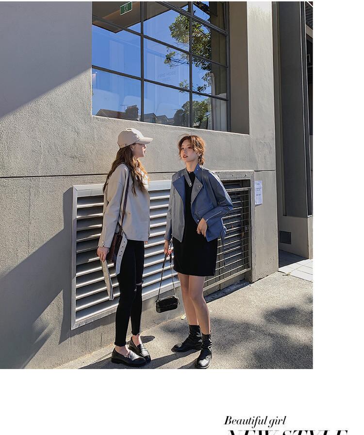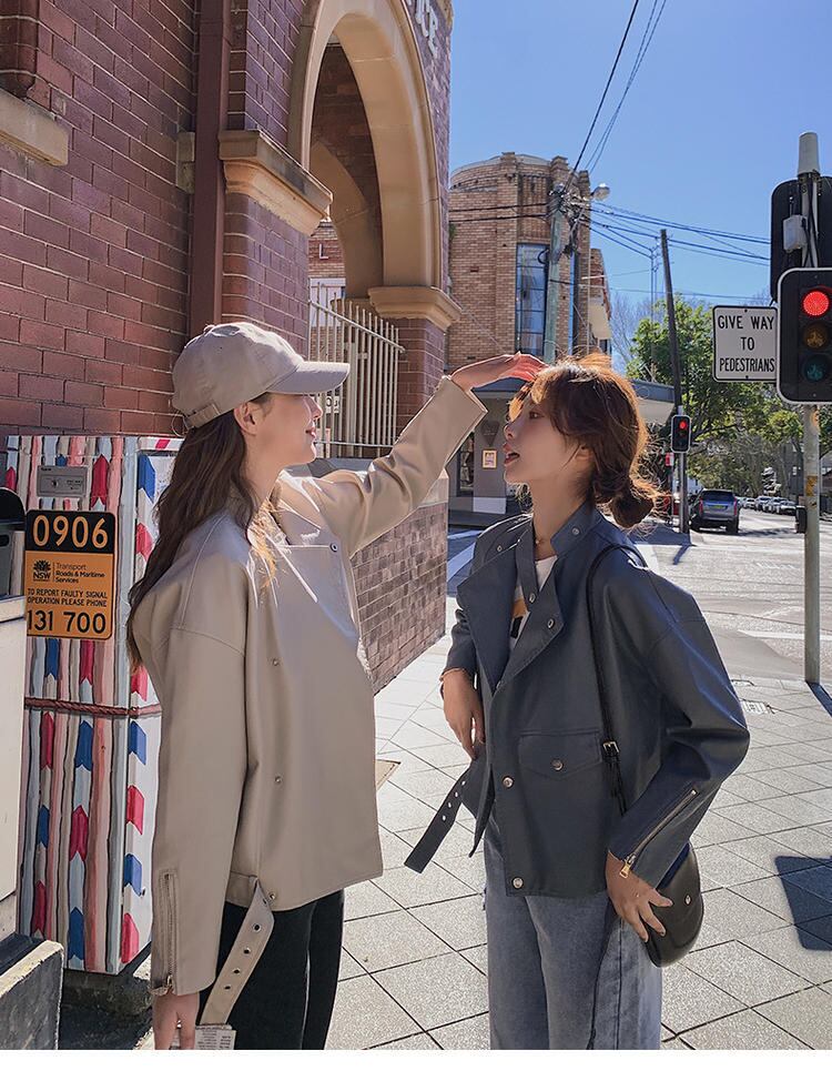 【送料無料】新品 ショートレザージャケット ♡スタンドカラーコート 韓国 オルチャン K-POP アイドル ワンピース ジャケット コート ブルゾン ブラウス スーツ カーディガン ニット フーディー トレーナー キャミソール スカート シャツ 10A53313409388