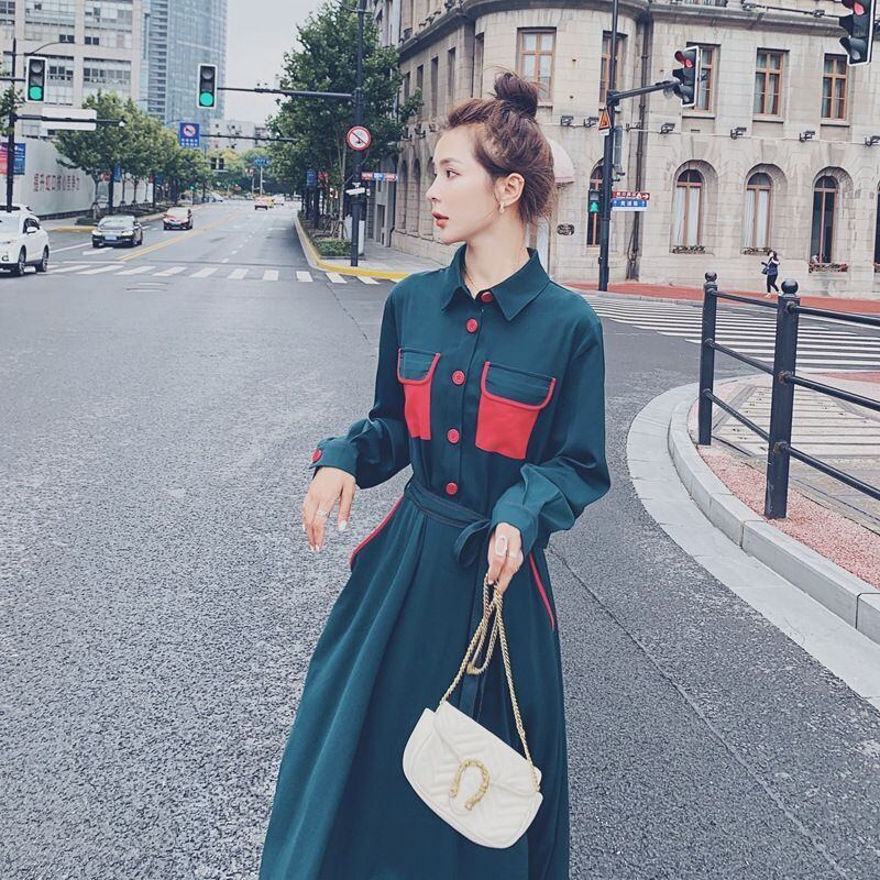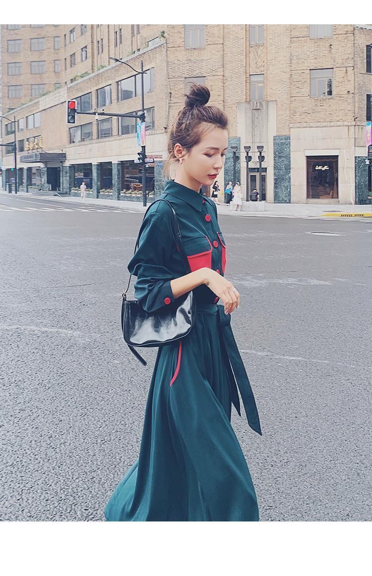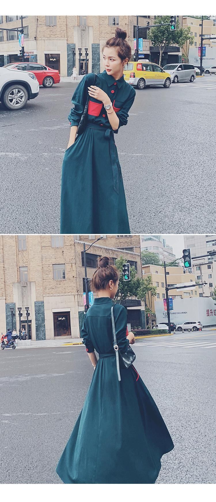 【送料無料】新品 ダークグリーン★シャツブラウススカート コート ロング ハーネス ベルト 韓国 オルチャン K-POP アイドル ワンピース ジャケット コート ブルゾン ブラウス スーツ カーディガン ニット フーディー トレーナー キャミソール スカート シャツ 10A49320985634