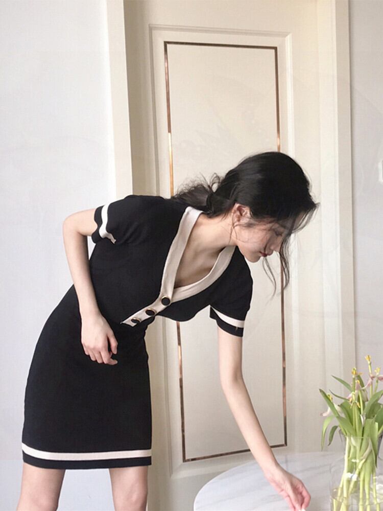【送料無料】新品 ブラックスカート Vネック♥カワイイ♥ニット シルク 韓国 オルチャン K-POP アイドル ワンピース ジャケット コート ブルゾン ブラウス スーツ カーディガン ニット フーディー トレーナー キャミソール スカート シャツ 10A33141974644